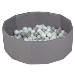 Petsona Foldable Dogs Pool with Balls, Dry Pets Foam Ball Pit, Soft Paddling Pool, gray: white/gray/mint