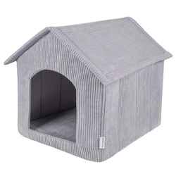 Petsona Niche Pour Chien avec Matelas Tissu Côtelé Fond Antidérapant Toit Zippé, gris foncé